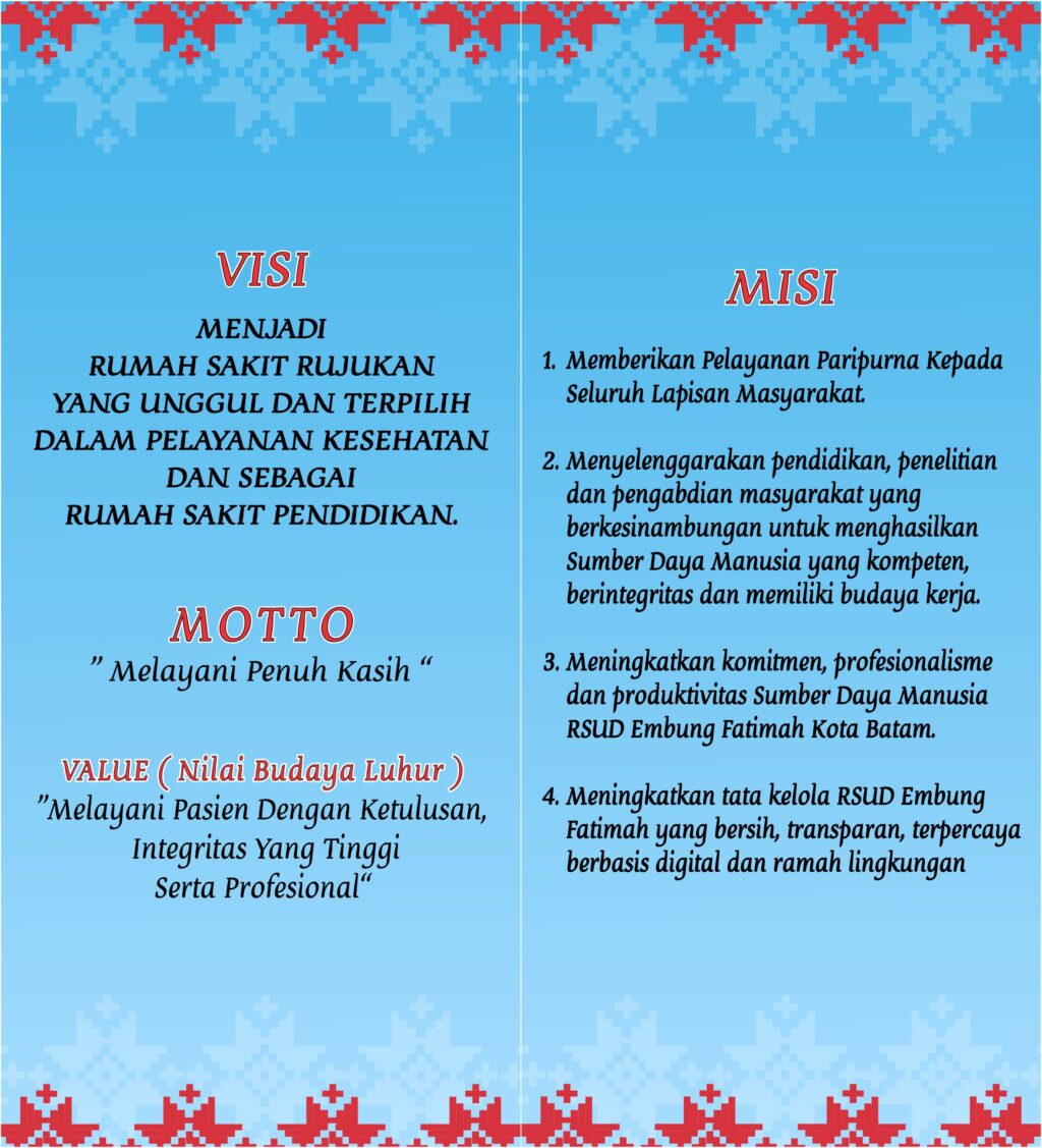 - Meningkatkan komitmen, profesionalisme dan produktivitas Sumber Daya Manusia RSUD Embung Fatimah Kota Batam.